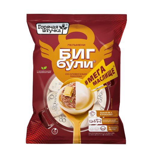 «БИГБУЛИ #МЕГАМАСЛИЩЕ со сливочным маслом» - пельмени, в которых по-настоящему много мясной начинки, наваристого бульона со сливочным маслом и нежное тонкое тесто.