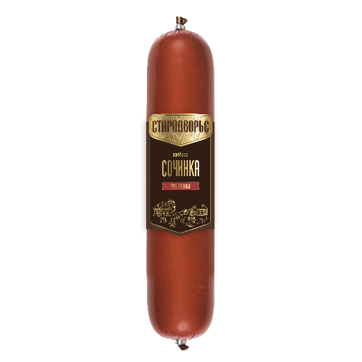 Ароматная полукопченая колбаса с рубленной структурой и добавлением в фарш сочного свиного окорока для особой мягкости и сочности.