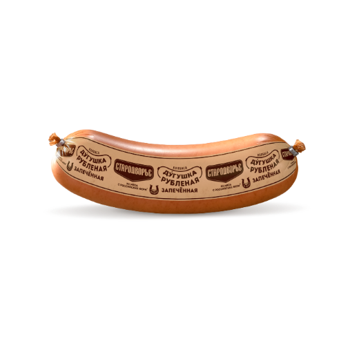Колбаса «Рубленая запечённая» Дугушка - деликатесная колбаса с кусочками сочного окорока, приготовленная по уникальной технологии запекания в печи.