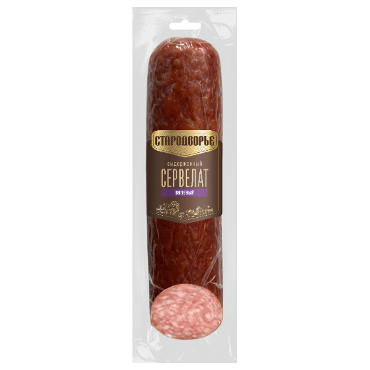 «Сервелат Вяленый» - это не просто варено-копченая колбаса. Это продукт, изготовленный по особой технологии, только из качественного мяса и натуральных специй и выдержанный в течении пяти дней в специальной камере сушки по европейской технологии. Это новый вид деликатеса, каждый ломтик которого имеет насыщенный вкус с легкой пикантной ноткой, который оставляет желание отрезать еще и подать его на стол.