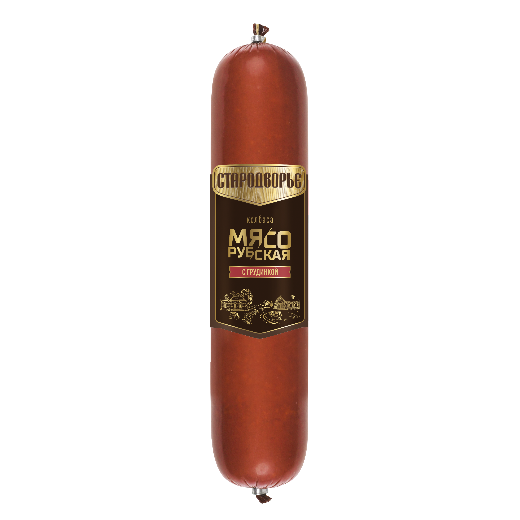 Варено-копченая колбаса «Мясорубская с рубленой грудинкой» с сочной и ароматной рубленой структурой в лучших традициях мясного производства. Букет ароматных специй подчёркивают вкус мяса варено-копченой колбасы.