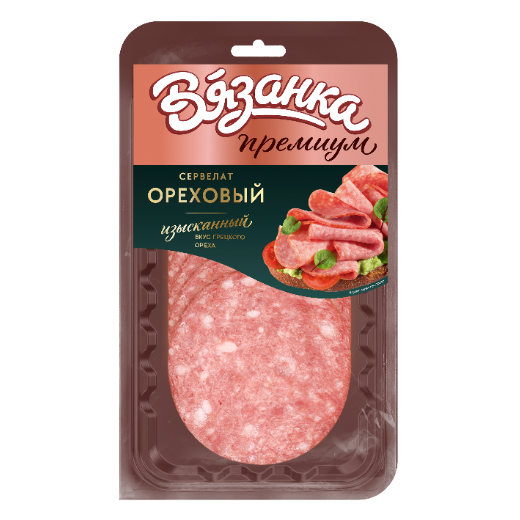 Сервелат Ореховый – гармоничное сочетание изысканного вкуса с насыщенными нотами грецкого ореха и натурального мясного состава. Безупречно высокое качество и ультратонкая нарезка позволяет родителям устроить идеальный вечер «для двоих». А большой диаметр не только выгодно отличает от конкурентов, но позволяет раскрыть всю красоту и аппетитность мясной рисунка.