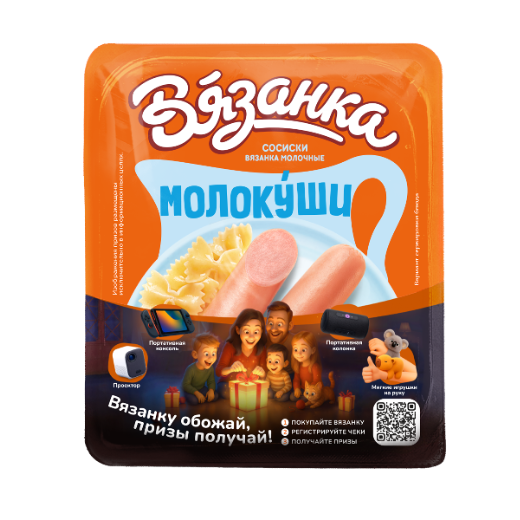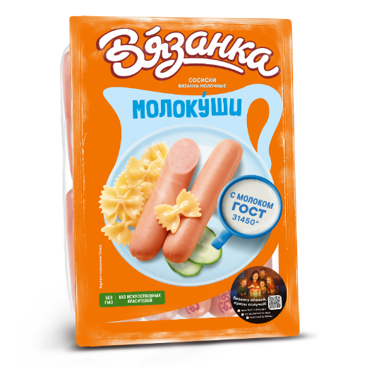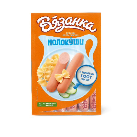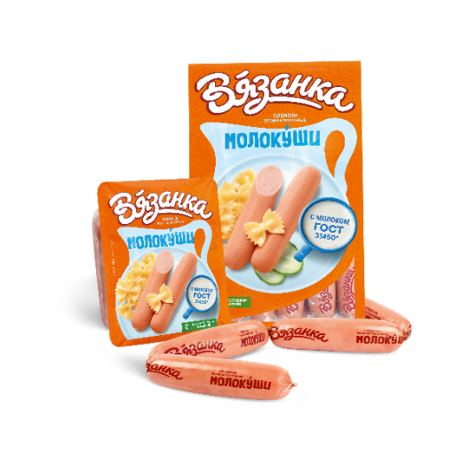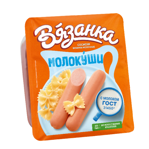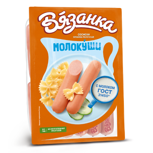 *По сравнению с предыдущей рецептурой сосисок «Молочные» «Вязанка».