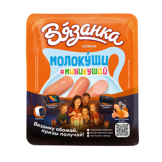Сосиски "Молокуши #миникушай" - мини-сосиски всем вкусно и удобно кушать. Длина сосиски всего 6 см, а значит она идеально подойдет для потребления всей семьи: с детьми на завтрак, в качестве быстрого мясного перекуса на работе или полноценного семейного обеда/ужина.