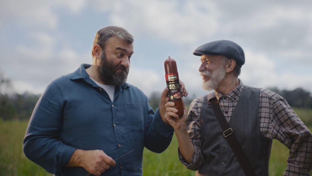 Актёр даёт креативные определения этим способам – «крупно-мясорубно» и «мелко-мясорубно», – после чего пробует бутерброды с обоими продуктами и приходит к выводу, что колбасы отличаются и на вид, и на вкус.