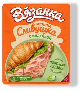 • Ветчина «Сливушка с индейкой» – абсолютная новинка бренда, представленная только в формате «нарезка». Это нежный, низкокалорийный продукт, богатый белком и витаминами, который станет идеальной основой полезного завтрака для всей семьи.